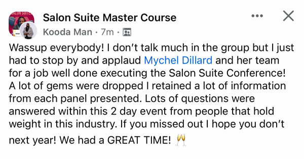 Access the complete National Salon Suites Conference experience on-demand with your smartphone or laptop. Re-watch valuable content or catch up on anything you might have missed, all at your convenience. Enjoy unlimited access!